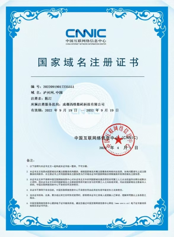 对于有想法、有眼光、有布局的投资者来说,这两个域名不是简单的 “网络地址”,而是:政策红利的 “捕手”:锁定乡村振兴万亿市场的入场券;地域资源的 “掌控者”:垄断泸州核心 IP 的数字变现权;增值无限的 “硬资产”:数字时代的财富压舱石;商业布局的 “敲门砖”:快速切入市场、建立品牌的捷径。