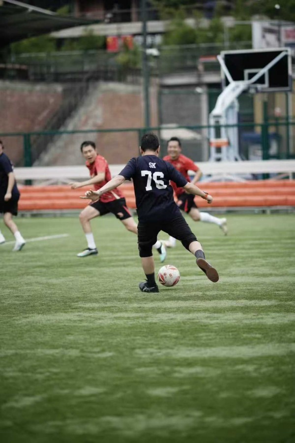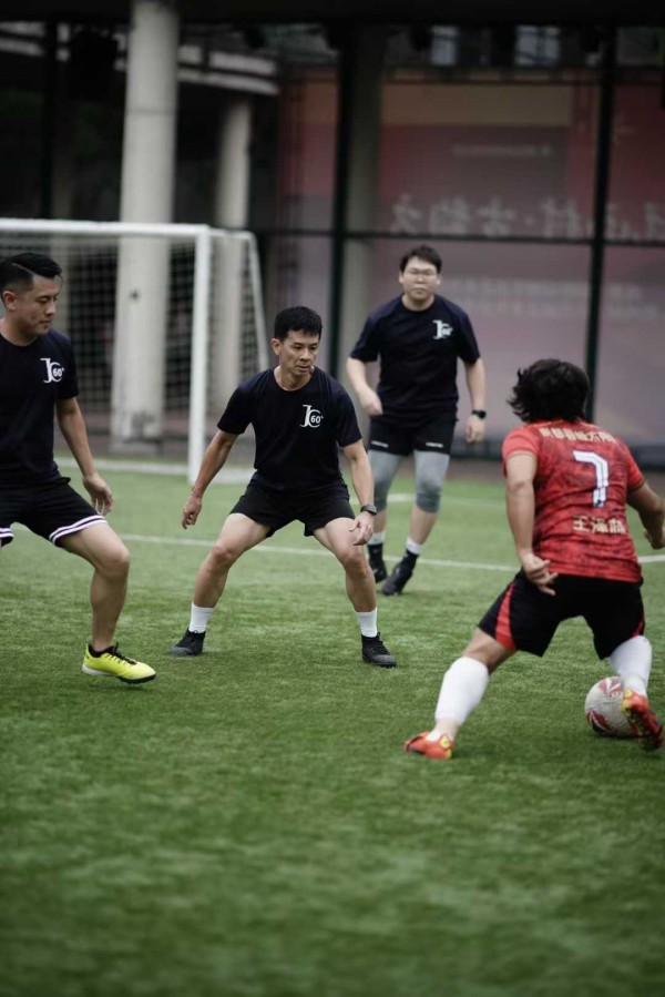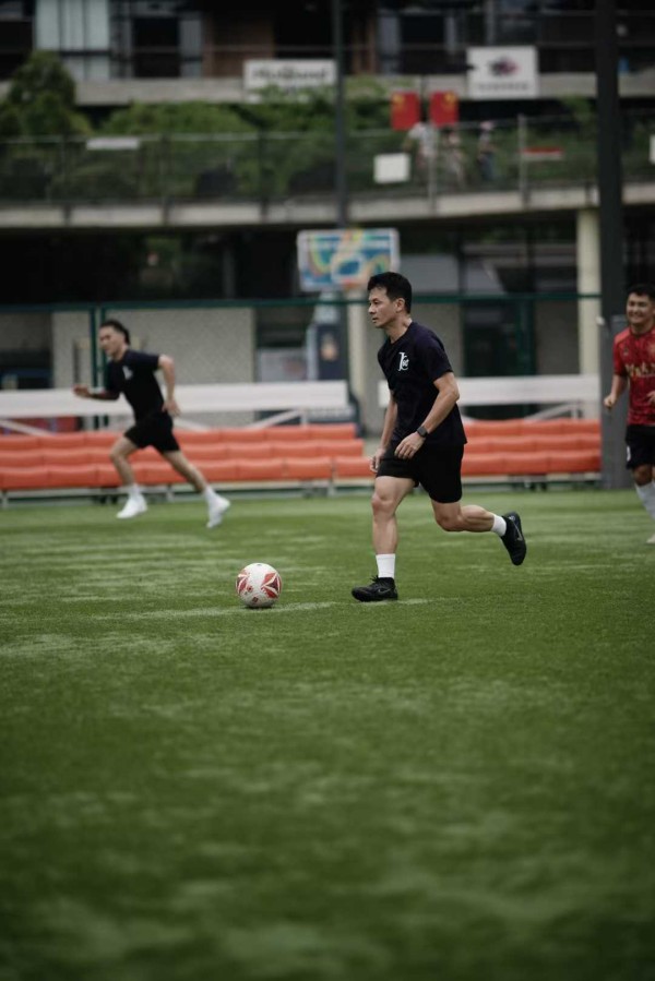 比赛现场,双方领队的参与方式颇具看点。”智面玄赏”创始人陶然先生因腿部伤势,选择以门将身份参与比赛,在球门前的每一次扑救都展现出企业家的专注与坚守。而”张学友60+”巡演团队音乐总监吴庆隆先生则以其独特的艺术气质,在绿茵场上展现出别样的团队领导力。两位不同领域精英的参与,为这场比赛增添了特别的魅力。