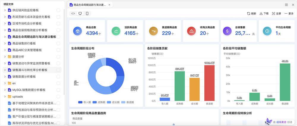 比如,当用户在超级麦吉的对话框输入“商品生命周期追踪与淘汰建议”时,它交付的不是一段文字,而是一个可供演示的成品。相比之下,过去一个调研报告需要调研团队花上一周的时间撰写,还需要设计人员花费几天排版美化。